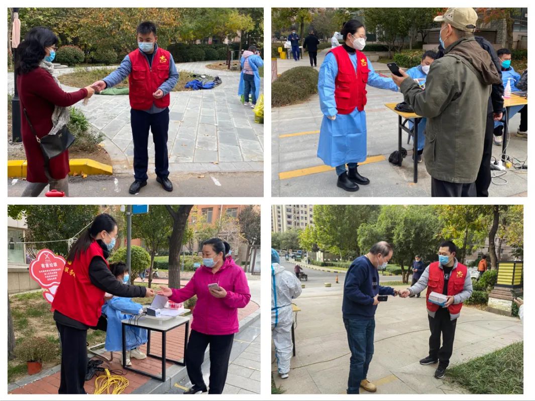 志愿服務(wù)暖人心。志愿者們準(zhǔn)時到達社區(qū)核酸采集點,在各個檢測點幫助維持秩序,引導(dǎo)群眾保持安全距離,有序檢測,幫助老年群眾注冊核酸檢測信息碼,發(fā)放核酸檢測貼紙,宣傳疫情防控法律法規(guī),針對群眾提出的各項疑問進行耐心解答。志愿者們在不同的崗位上履職盡責(zé),配合社區(qū)工作人員、醫(yī)務(wù)工作者明確分工、協(xié)調(diào)配合,大大提高了檢測效率,確保了社區(qū)按時完成全員核酸檢測工作。